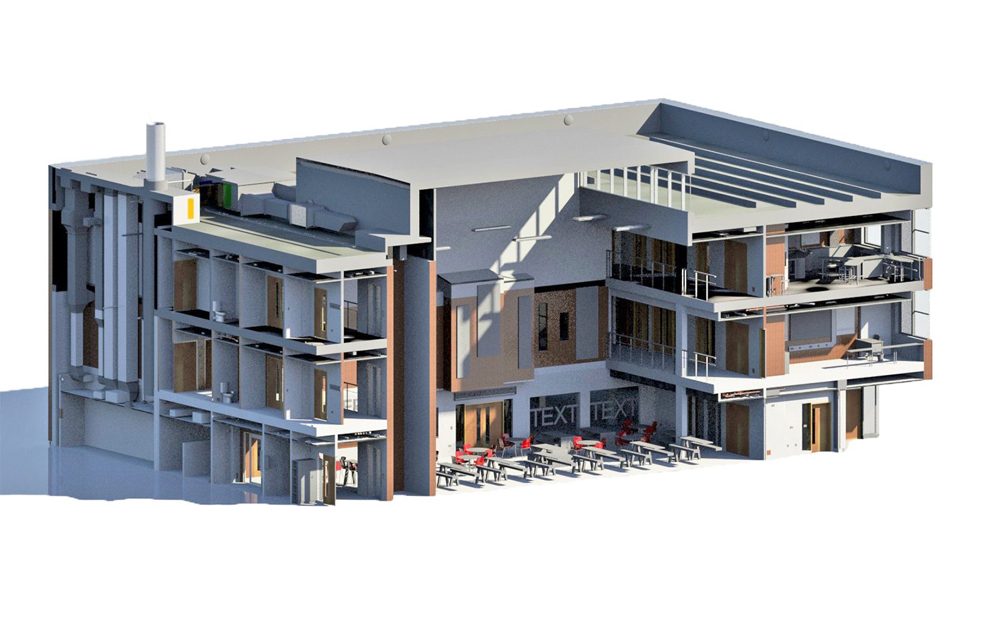 The design centred around a dynamic central dining atrium and main hall, with innovative placement of science labs above the hall to maximise teaching space. We incorporated colour-coded floors for intuitive wayfinding, strategically positioned teacher offices for natural supervision, and created IT-rich classrooms designed for project-based learning.