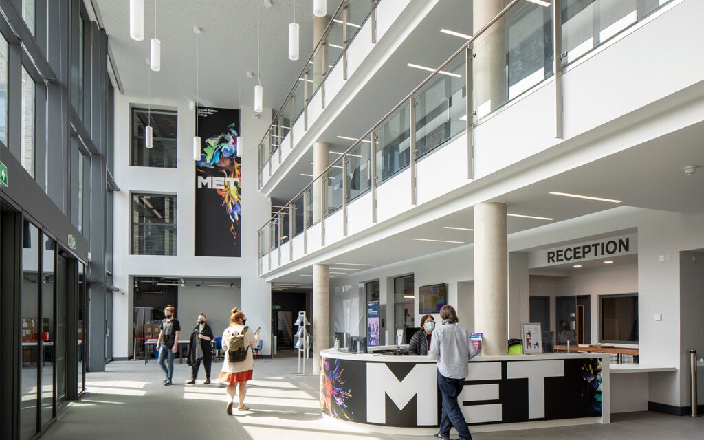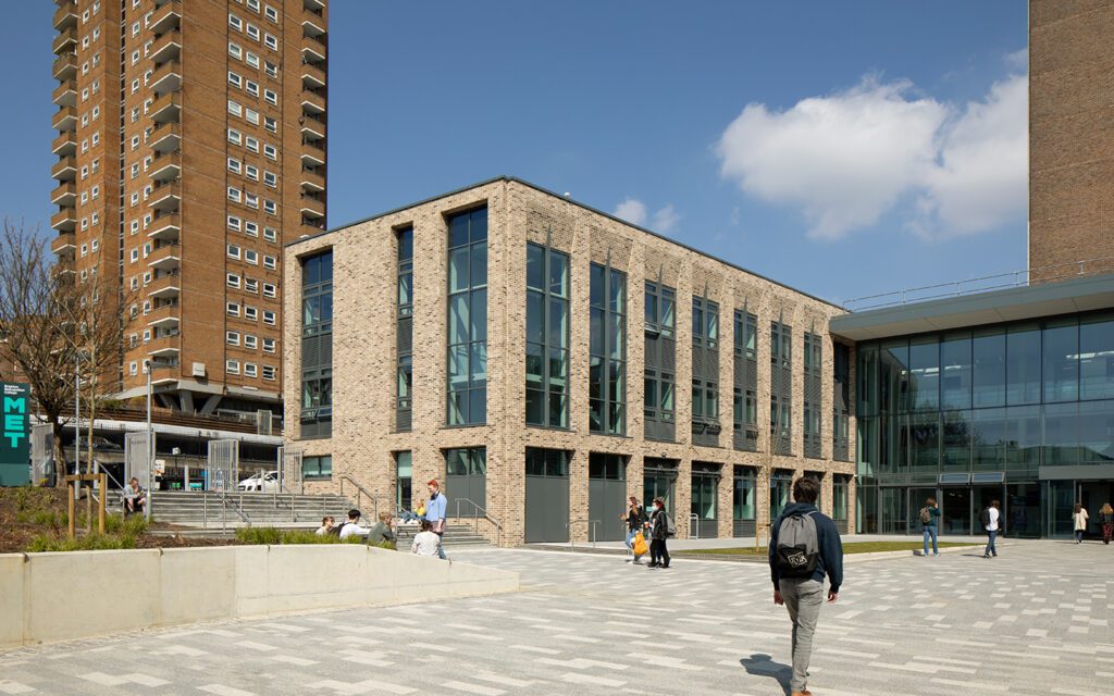 Phase 1 focused on consolidating the college into a single building through strategic new extensions and refurbishment of the existing Pelham plinth. Central to our design was the creation of a welcoming new entrance set within a large outdoor plaza, complete with secure bike storage and public access during daytime hours. The east wing houses professional-grade hair and beauty salons with improved public access, while the west wing delivers purpose-built studios and workshops for Creative Industries.