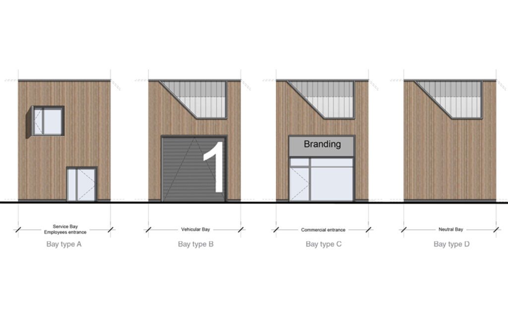 The three commercial blocks have been designed as a series of adaptable bays, future-proofing the development for evolving business needs. Each unit features interchangeable ground-floor frontages, allowing easy conversion between roller shutters, commercial entrances, or alternate glazing options. Internal flexibility extends further with removable party walls to combine units, and the capability to install mezzanine floors, maximising the premium floor space without compromising the building’s integrity.