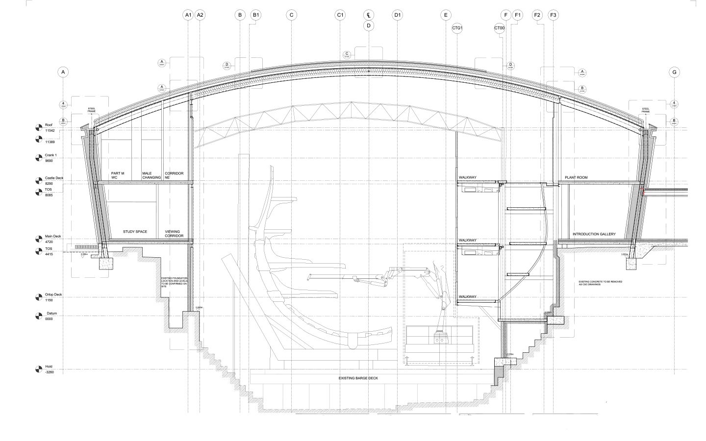 Our team incorporated the use of Revit on this project, enabling us to understand and navigate the complex geometry of the building. This technical approach proved invaluable for coordinating the intricate steel frame, wall build-ups, and staircase designs around the existing Weymss structure that housed the ship. The precision demanded was exceptional – even minor temperature fluctuations could compromise years of conservation work, requiring 24-hour vigilance throughout construction.