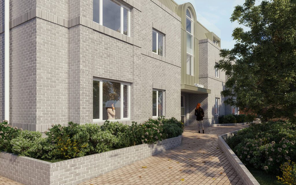The scheme comprises 11 thoughtfully designed one and two-bedroom apartments over three storeys, specifically created for women with children requiring temporary accommodation for up to one year. With an estimated 76% improvement in Space Heating Demand over Part L1 2022 compared to traditional buildings, this development combines design excellence with ambitious sustainability goals.