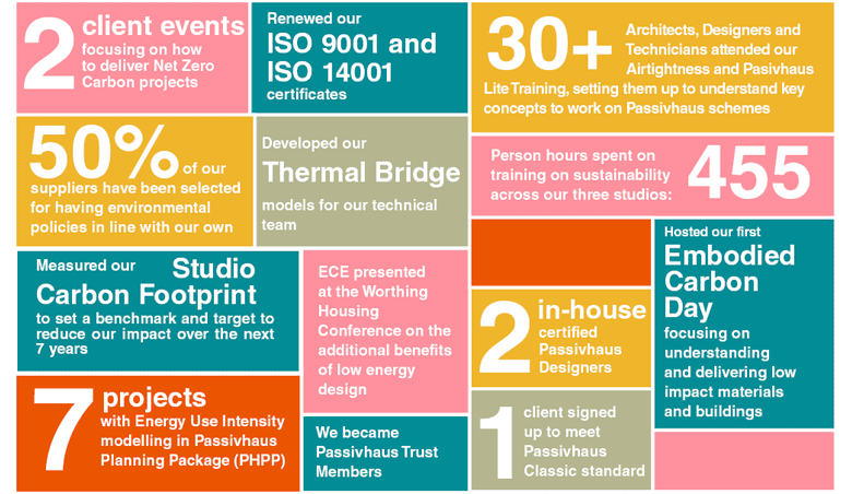 We hosted our first-ever Passivhaus Client event as well as an internal embodied carbon workshop and actively participated in local events and national guidance, like the UK Net Zero Carbon Buildings Standard.