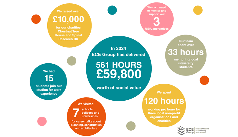 In 2024, ECE Group dedicated 561 hours to delivering social value, equating to £59,800 of support for charities, schools, and local communities.