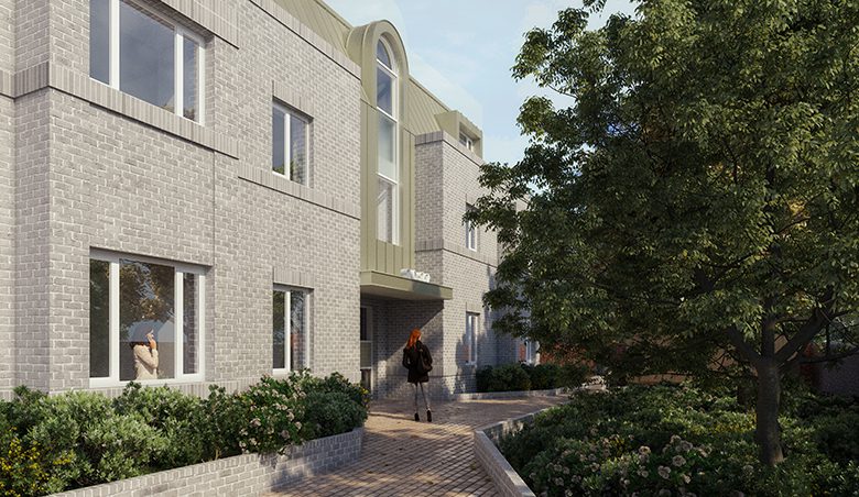 The architectural aesthetic will be a contemporary interpretation of the houses in the area, utilising weathered grey brick and green zinc roofing to sit comfortably with the adjacent Richmond Road conservation area. Communal gardens, with retained mature trees and native planting to enhance biodiversity, and on-site car and cycle parking are located to the rear of the site.