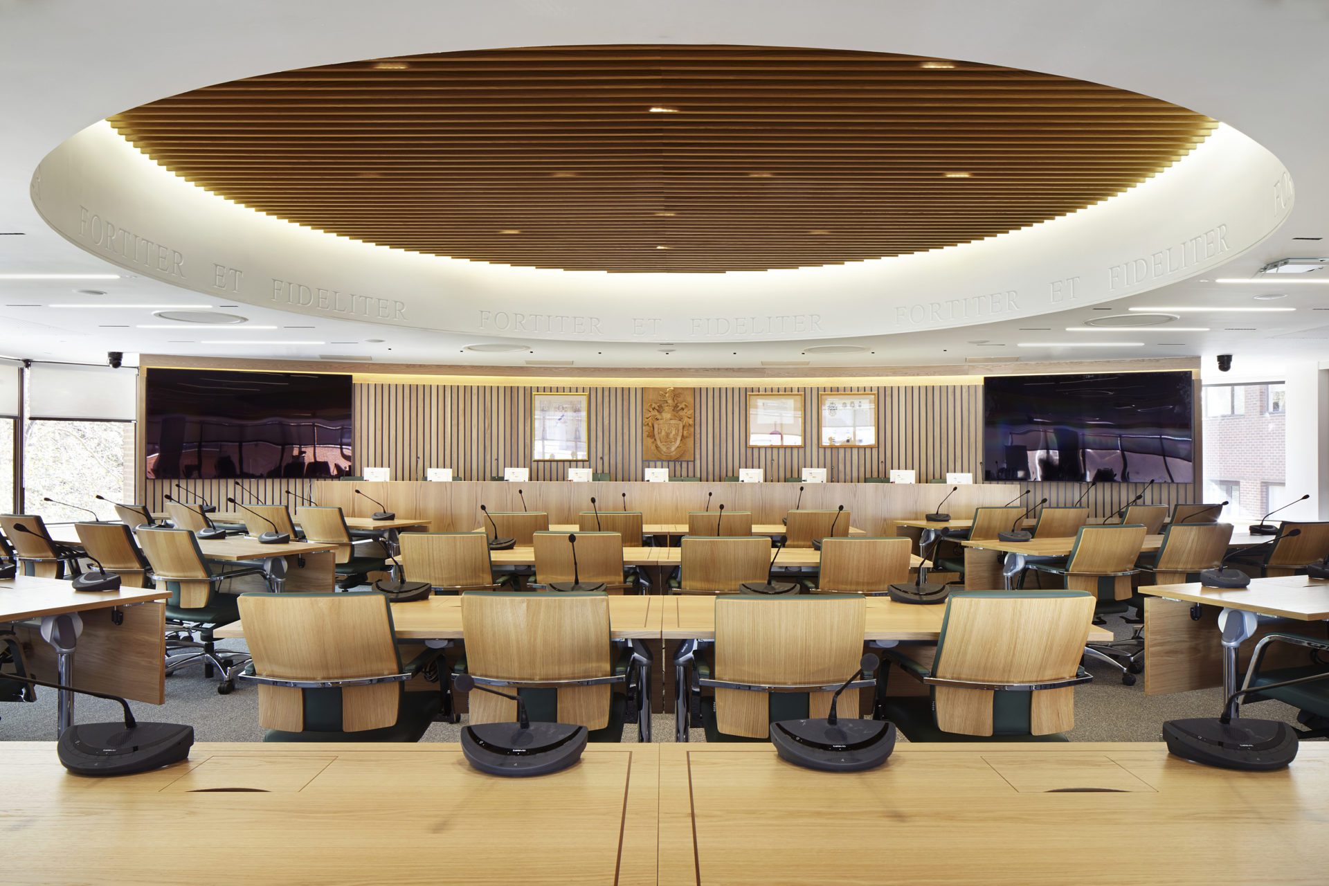 ECE carried out refurbishment works to improve the building’s public use, making it accessible to all. The project consisted of the reorganisation of reception and refurbishment of the council chamber, providing new spaces from conventional meeting rooms through to discreet informal booths to improve counter-facing opportunities.