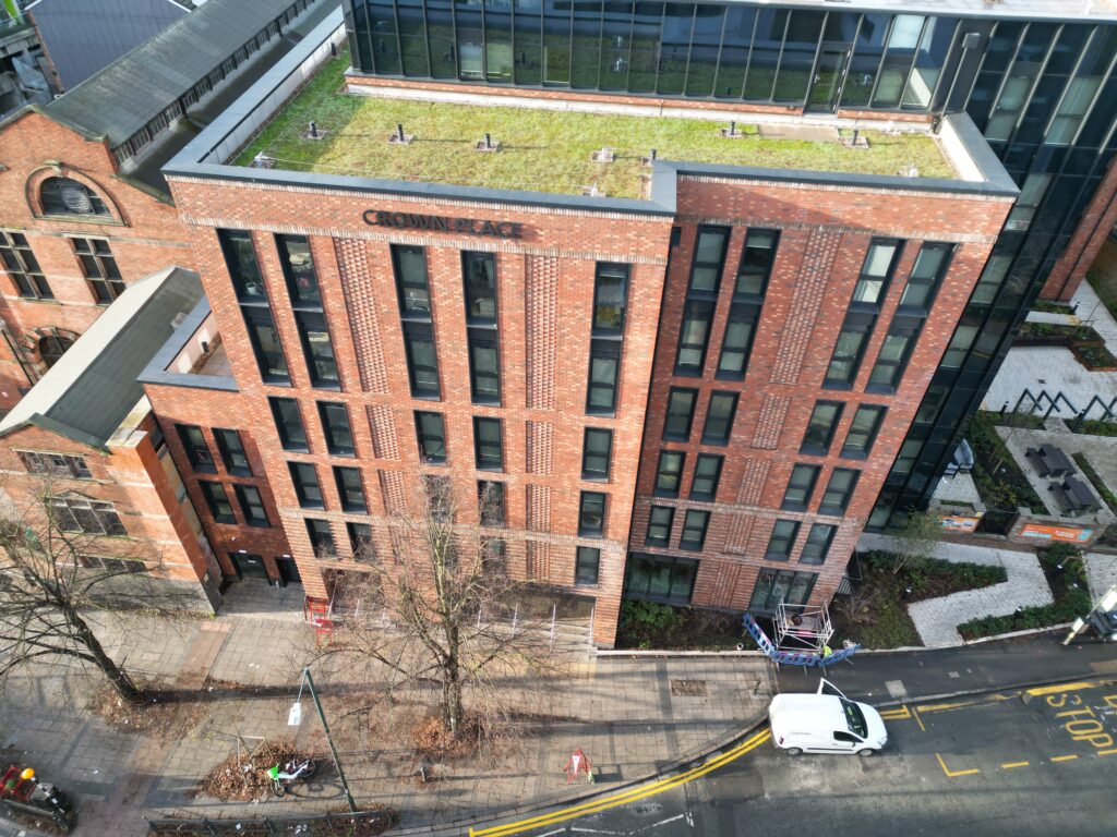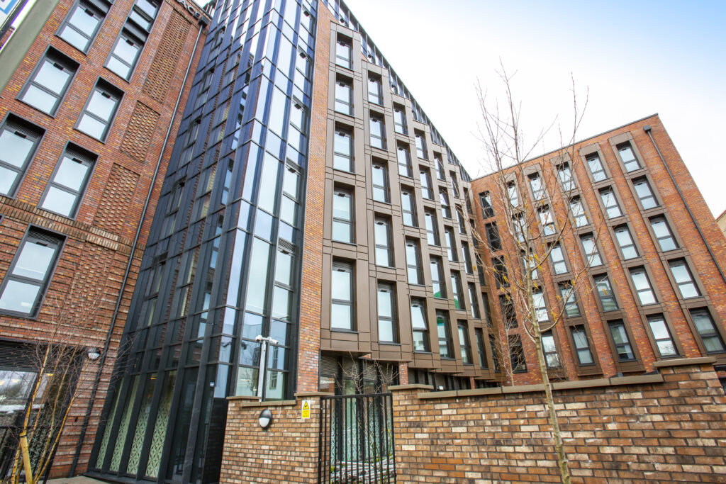 A new 6 storey building to provide 426 PBSA beds in Nottingham City Centre.​The internal layouts provide varying unique accommodation types varying from studios to multi-level cluster apartments. The scheme has been designed around 3 courtyards to provide urban realm improvements and private amenity for the occupants. Completed 2024.​