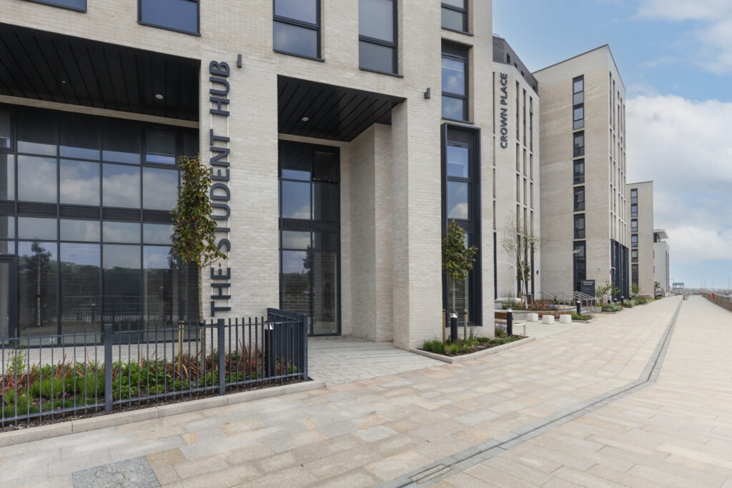 Design and delivery of a high-quality purpose-built student accommodation scheme as part of the SA1 Waterfront masterplan. The proposal comprises of 638 beds, varying from studios to multi-level cluster apartments. These will be supported by associated communal facilities, landscaping and ancillary facilities and an A2 retail unit.
